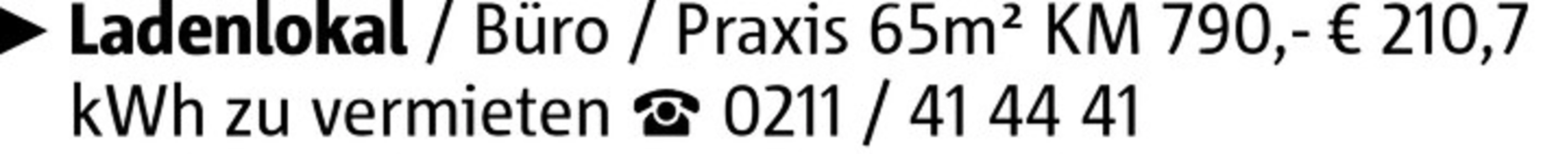 Ladenlokal / Büro / Praxis 65m² KM 790,- € 210,7 kWh zu vermieten 0211 / 41 44 41