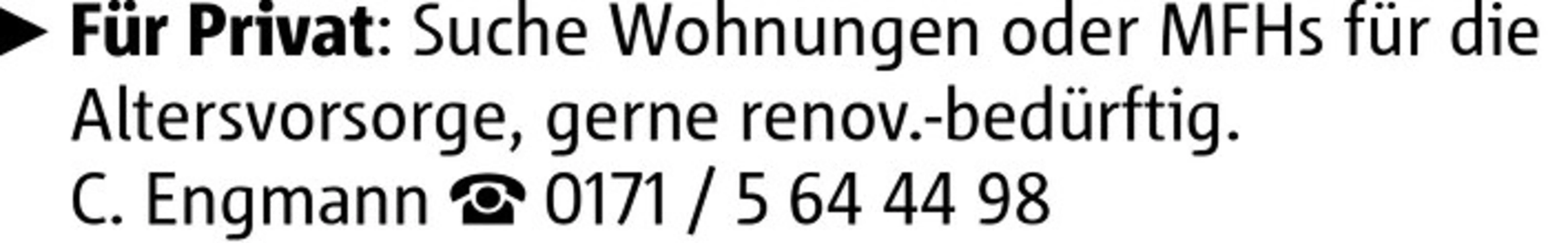 Für Privat: Suche Wohnungen oder MFHs für die Altersvorsorge, gerne renov.-bedürftig. C. Engmann 0171 / 5 64 44 98