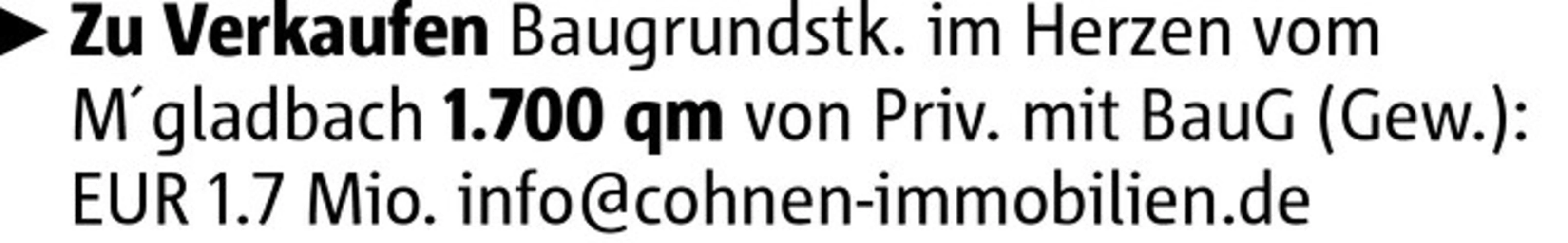 Zu Verkaufen Baugrundstk. im Herzen vom M´gladbach 1.700 qm von Priv. mit BauG (Gew.): EUR 1.7 Mio. info@cohnen-immobilien.de