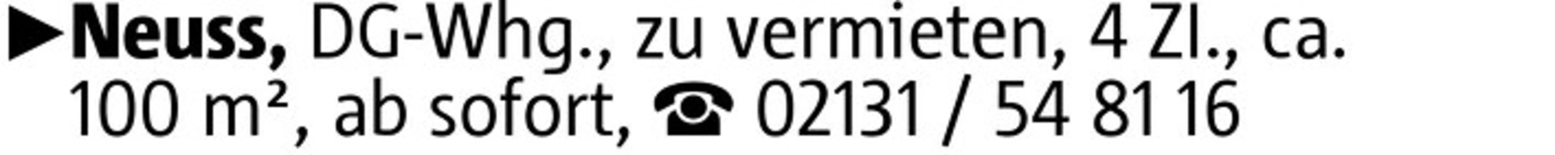 Neuss, DG-Whg., zu vermieten, 4 ZI., ca. 100 m², ab sofort, 02131 / 54 81 16