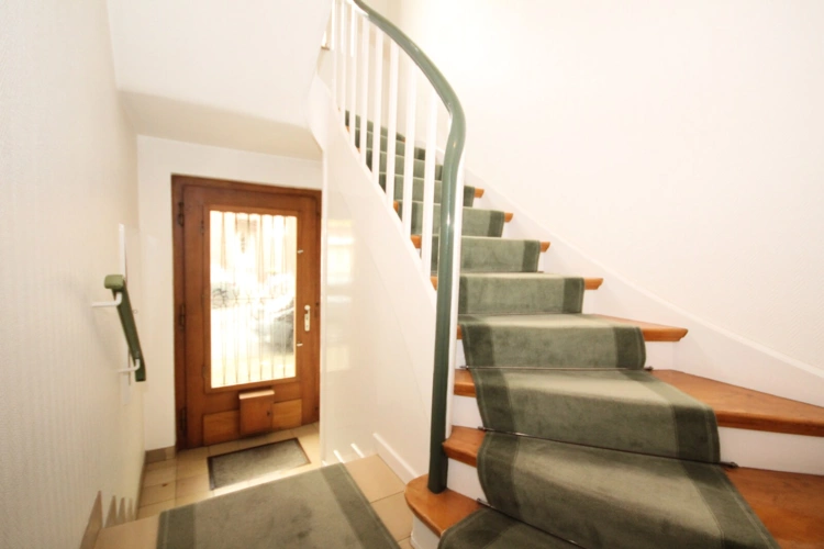 Das Treppenhaus ist ein weiteres Schmuckstück und fügt sich harmonisch in das Gesamtbild ein. Im ersten Obergeschoss sind ebenfalls drei Zimmer sowie ein Badezimmer in gleicher Ausstattung wie im Erdgeschoss zu finden. Von der Küche gelangen Sie auf den Balkon, welcher einen herrlichen Blick auf die Gärten in der Umgebung bietet. Zudem können Sie hier die Sonne bis in den späten Abend genießen.