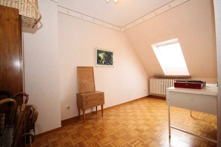 Die zweite Etage verfügt über vier weitere Zimmer und ein Badezimmer mit Dusche und Fenster. Das Dachgeschoss ist derzeit nicht ausgebaut, bietet jedoch Potenzial für eine spätere Erweiterung etwa zu zusätzlichem Wohnraum oder individueller Nutzfläche. Der Keller sorgt für wertvolle Staufläche und Platz für Vorräte oder andere Nutzungen.