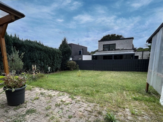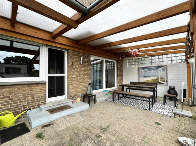 Sowohl vom Essbereich als auch von der Küche gelangt man auf die überdachte Terrasse, die einen freien Blick in den nordwestlich ausgerichteten Garten gewährt. Ideal für entspannte Sonnenstunden am Nachmittag und Abend.