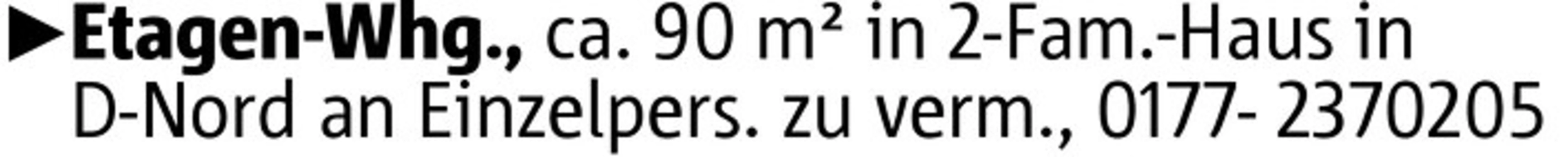 Etagen-Whg., ca. 90 m² in 2-Fam.-Haus in D-Nord an Einzelpers. zu verm., 0177- 2370205