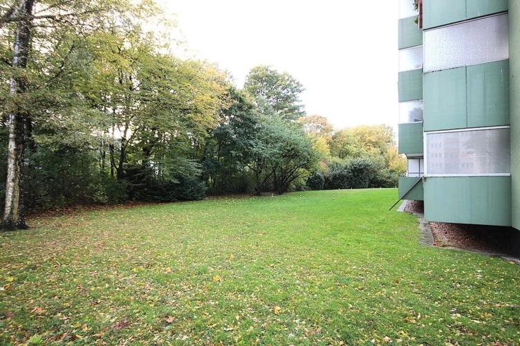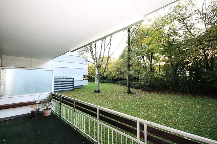Das großzügige Wohnzimmer ist ein weiteres Highlight der Wohnung und öffnet sich zu einem Balkon von etwa 13 m², der mit seiner Aussicht ins Grüne zum Entspannen einlädt.