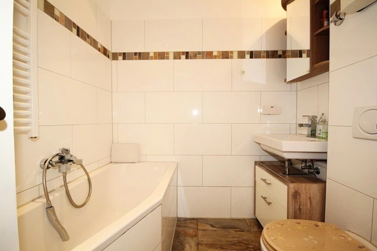 Das innenliegende Badezimmer wurde bereits überarbeitet und bietet nun sowohl eine Dusche als auch eine Badewanne. Die Lüftung im Badezimmer lässt sich manuell steuern, sodass das Raumklima stets optimiert werden kann.