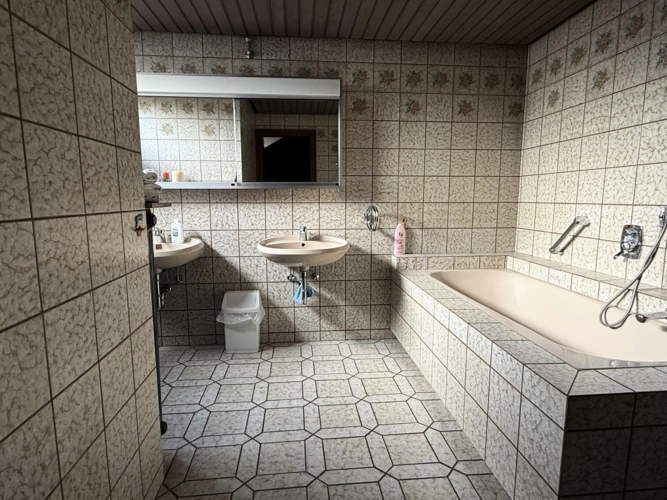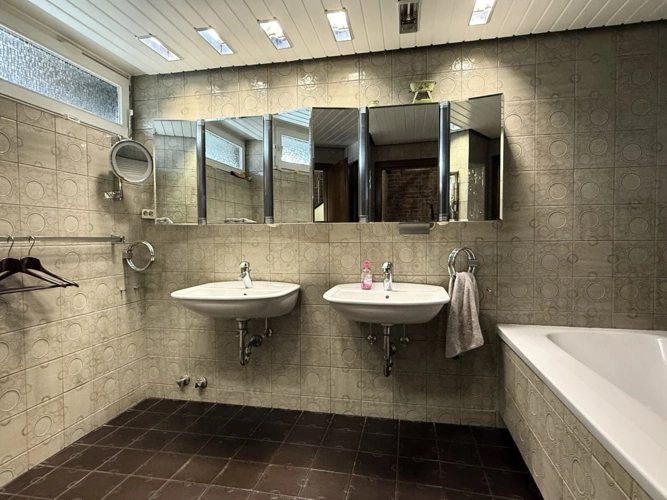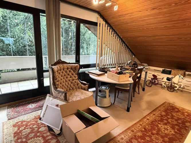 Im Obergeschoss erwartet Sie ein gut durchdachtes Raumkonzept mit insgesamt vier Schlafzimmern. Zwei der Schlafzimmer bieten direkten Zugang zu einem Balkon, von dem aus Sie einen herrlichen Blick in den großen Garten genießen können der perfekte Ort für ein entspanntes Frühstück oder einen ruhigen Moment im Freien. Ein weiteres Badezimmer mit Badewanne sowie ein separates WC sorgen für zusätzlichen Komfort.