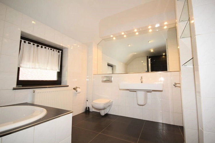 Das gesamte Erdgeschoss ist hell gefliest und mit einer Fußbodenheizung ausgestattet, die für besonders angenehme Temperaturen sorgt. Über das helle Treppenhaus erreichen Sie das Obergeschoss sowie den Keller. Im Obergeschoss befinden sich zwei Schlafzimmer und ein neu gestaltetes Badezimmer, das mit einer Badewanne, Dusche und Fenster ausgestattet ist. Ein praktischer Abstellraum vervollständigt die Raumaufteilung.