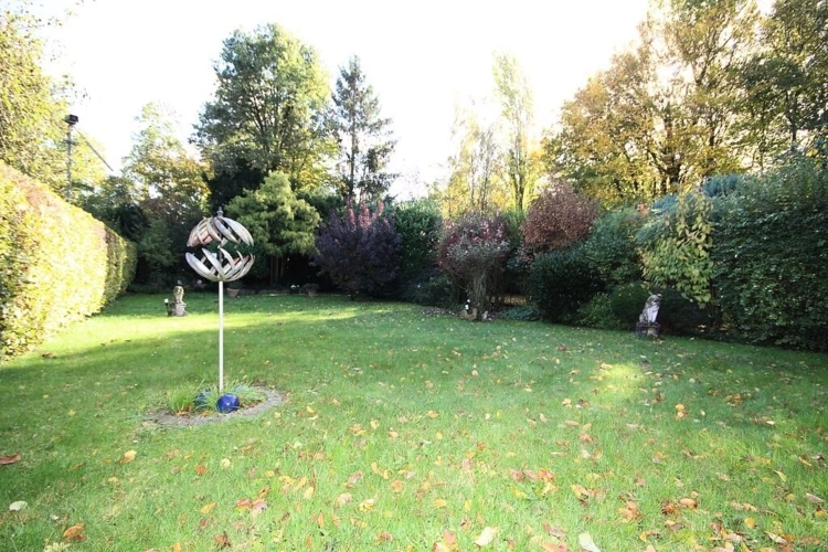 Im Erdgeschoss empfängt Sie eine einladende Diele mit einem praktischen Gäste-WC. Der einladende Raum mit Einbauküche, der nach Westen ausgerichtet ist, grenzt an den Essbereich zur Südseite. Zur Gartenseite öffnet sich der großzügige Wohnbereich. Durch zwei Terrassentüren haben Sie einen direkten Zugang zu den verschiedenen Terrassen und dem wunderschönen, komplett eingezäunten Garten. Dieser bietet zu jeder Tageszeit verschiedene Sitzmöglichkeiten, um die Sonne zu genießen. Ein kleiner Teich, die vielen Sträucher und Blumen verleihen dem Garten eine zusätzliche Wohlfühlatmosphäre. Über die Garage sowie ein weiteres Tor gelangt man ebenfalls in den Garten. Dank der etwas zurückgesetzten Lage des Hauses hat man von der Straße aus kaum Sicht auf das Grundstück, was eine hohe Privatsphäre garantiert.