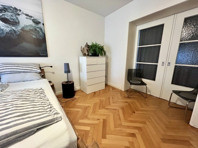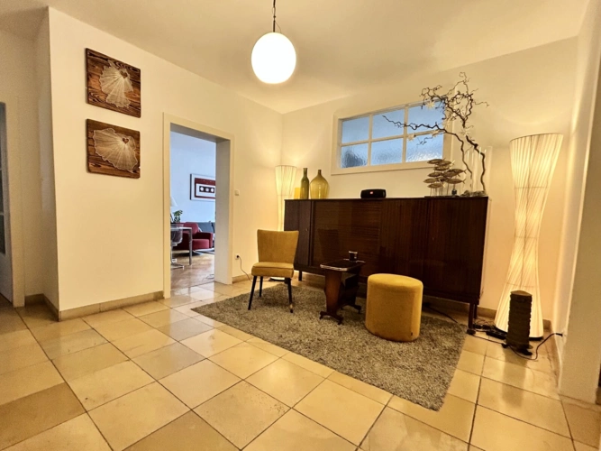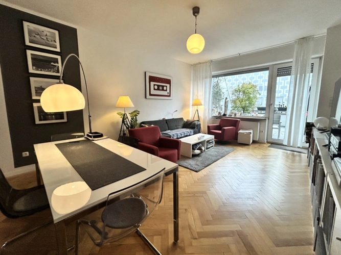 Highlight der Wohnung ist das etwa 28 m² große Wohnzimmer mit angrenzendem Essbereich, der rund 19 m² Fläche bereithält. Aktuell wird das Esszimmer als Schlafzimmer genutzt, was ebenfalls problemlos möglich ist.