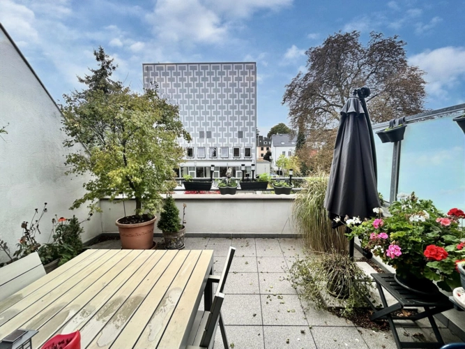 Auch eine schöne Terrasse in südwestlicher Ausrichtung grenzt an den Wohnbereich. Hier können Sie windgeschützt sitzen und die Sonne genießen.