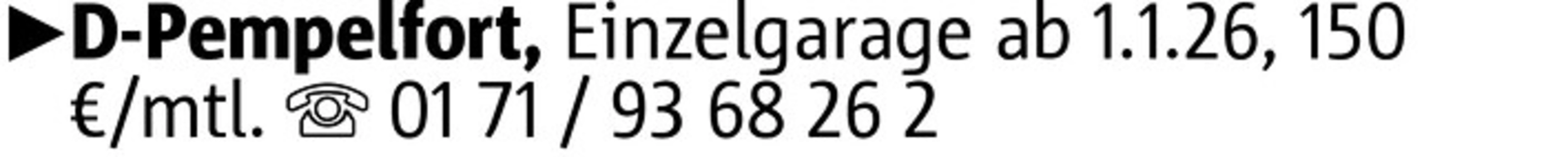 D-Pempelfort, Einzelgarage ab 1.1.26, 150 €/mtl. 01 71 / 93 68 26 2