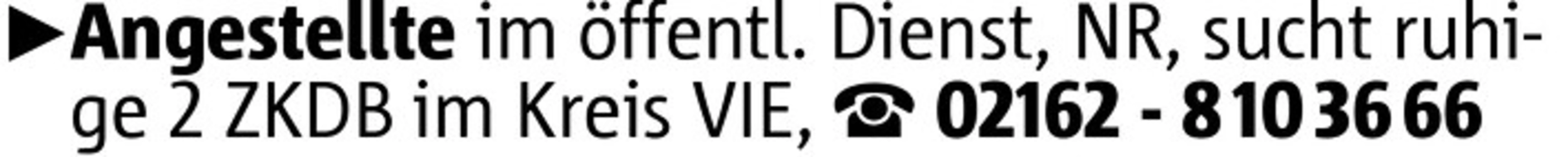 Angestellte im öffentl. Dienst, NR, sucht ruhige 2 ZKDB im Kreis VIE, 02162 - 8 10 36 66