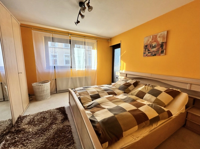 Das Schlafzimmer verfügt über einen weiteren, kleinen Balkon, der eine zusätzliche Rückzugsmöglichkeit bietet.