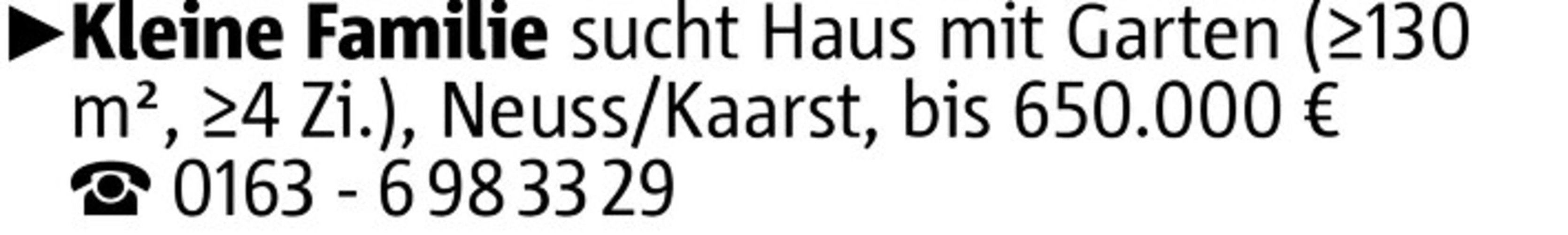 Kleine Familie sucht Haus mit Garten (130 m², 4 Zi.), Neuss/Kaarst, bis 650.000 € 0163 - 6 98 33 29