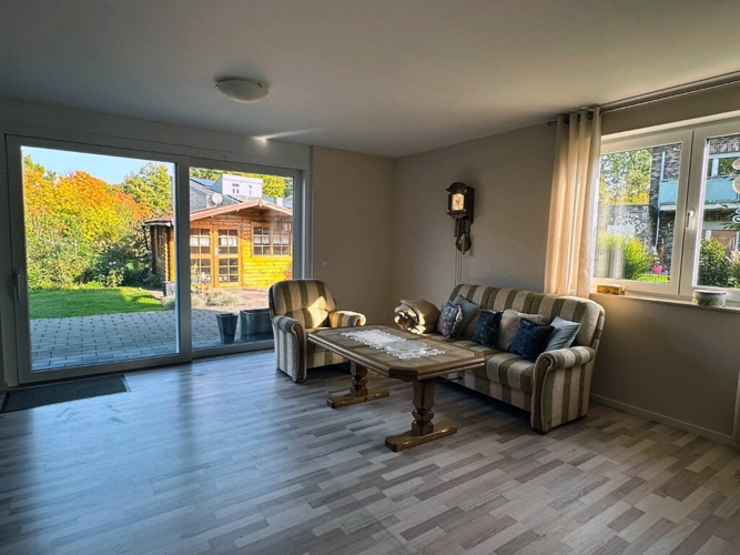 Direkt beim Betreten des Hauses sticht die angenehm helle, moderne Gesamtgestaltung ins Auge. Das großzügige Wohn- und Esszimmer mit vielen Fensterflächen und mit angrenzender Terrasse sorgt für besonders viel Charme und eine gemütlich einladende Atmosphäre.