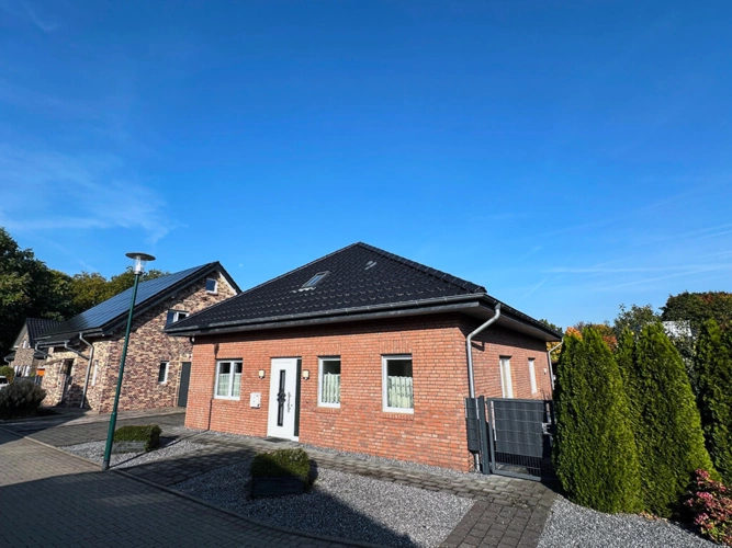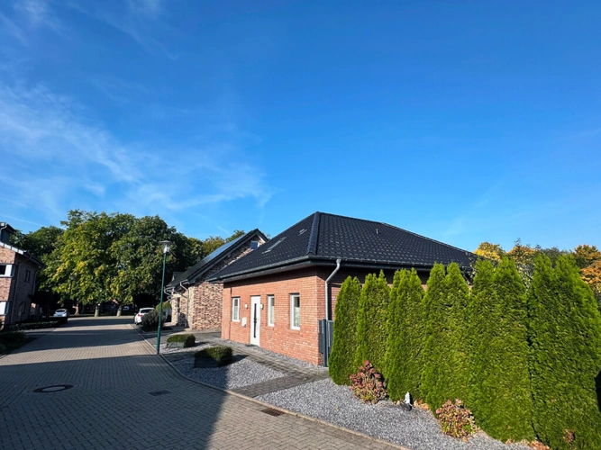 Diese freistehende Immobilie wurde um 2016 in Massivbauweise auf einem ca. 506 m² großen Grundstück in einer ruhigen Sackgasse eines zentrumsnahen Wohngebietes von Weeze erstellt.