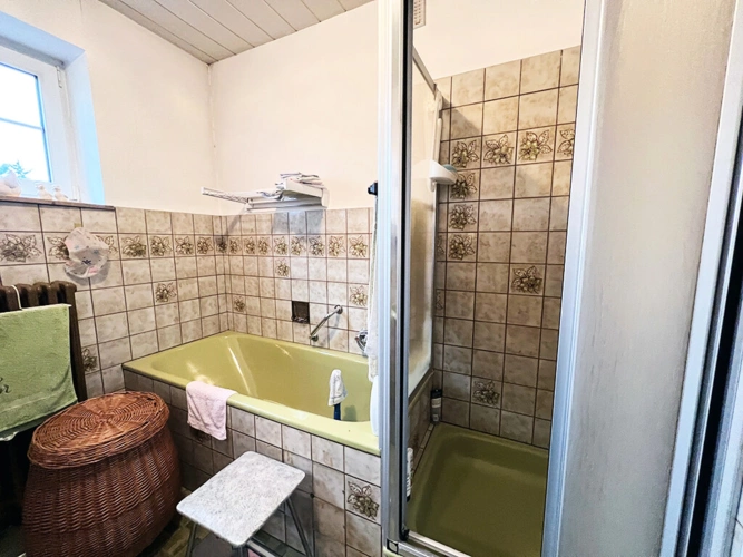 Einheit II (ca. 101 m² Wohnfläche) im Obergeschoss: Wohn- und Esszimmer, Küche, Diele, Bad (mit Wanne und Dusche), Abstellraum, Abstellkammer, Elternschlafzimmer, Kinderzimmer (respektive Büro)