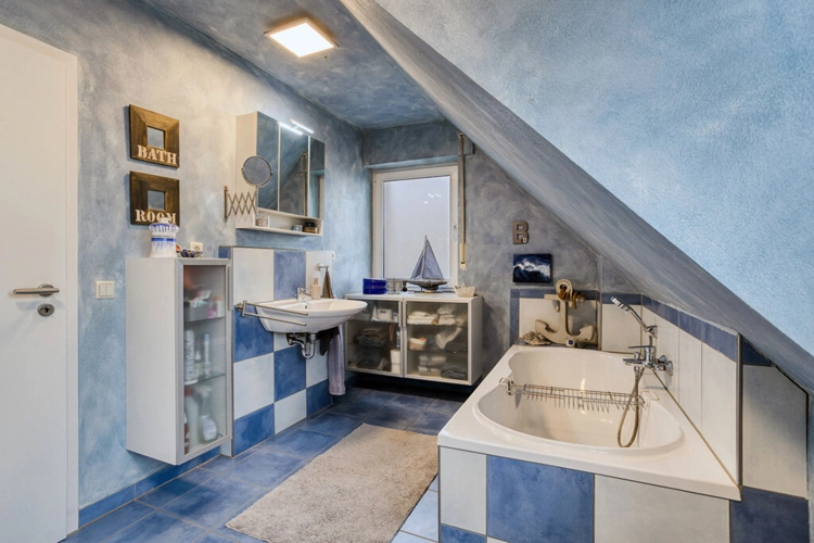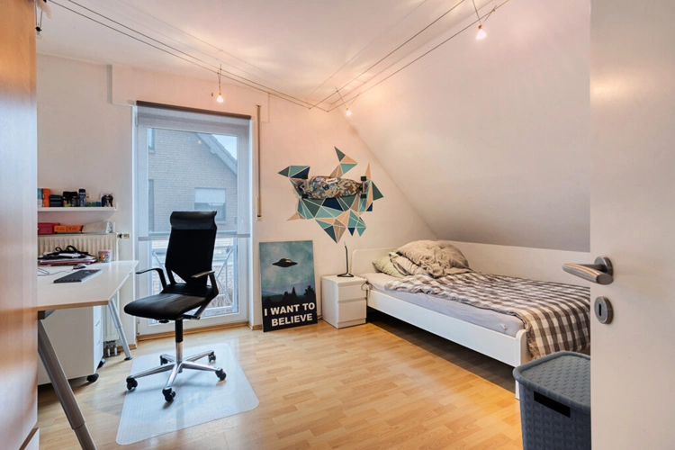 Spitzboden: Zugänglich über eine feste Treppe wurde dieser in wohnraumähnlicher Qualität (Heizung / Tageslichtfenster) ausgebaut. Hier findet sich zusätzliche Nutzfläche, die zuletzt u. a. als Büro genutzt wurde.