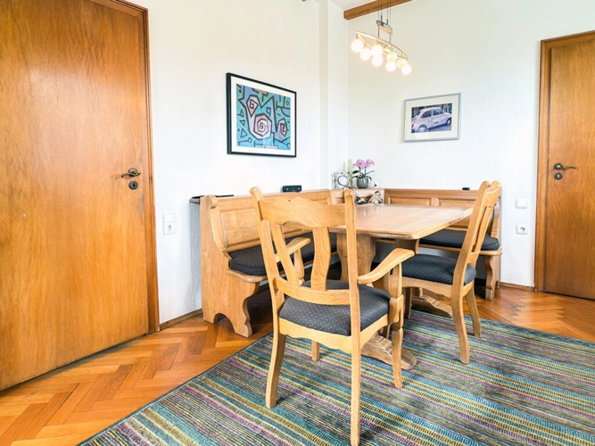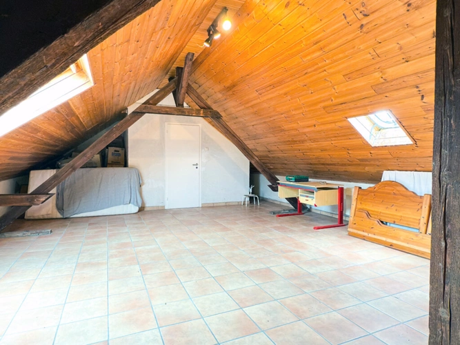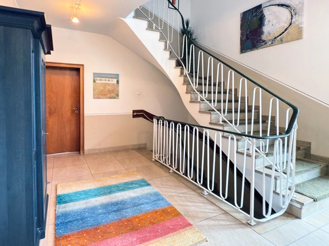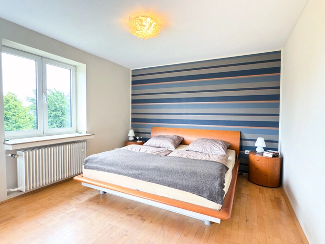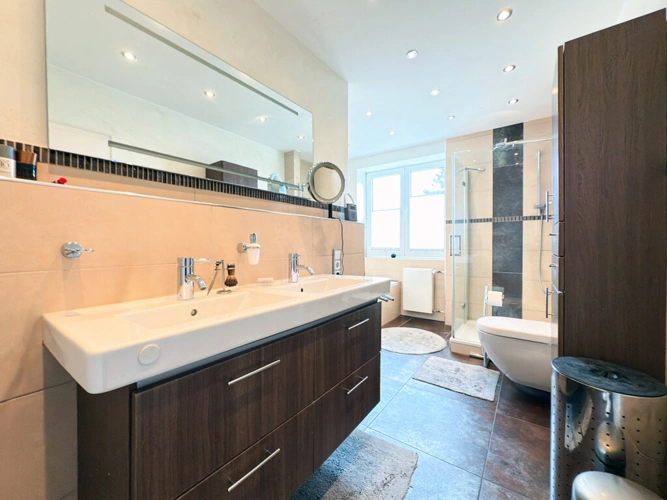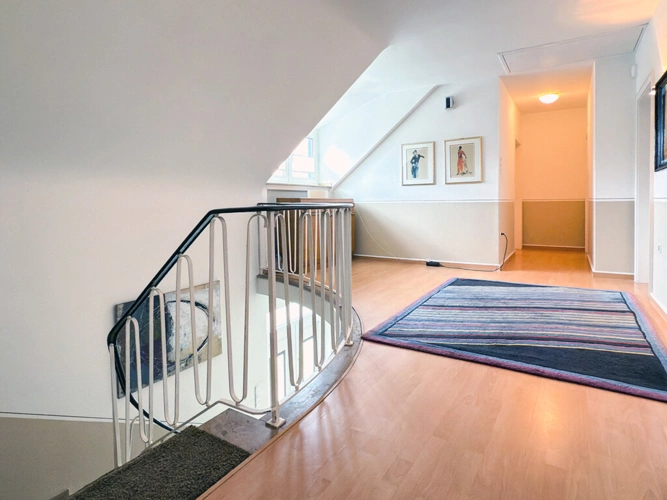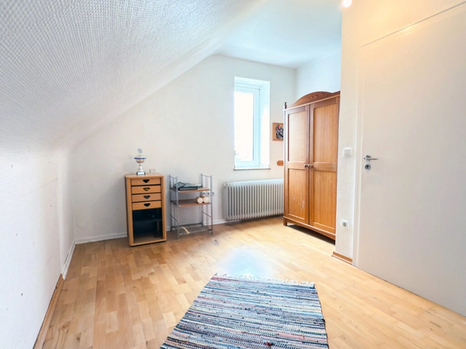 Dachgeschoss: Elternschlafzimmer, Ankleide, Kinderzimmer I, Kinderzimmer II, Kinderzimmer III (respektive Gästezimmer), Büro, Diele, Bad I (mit Waschtisch, Dusche und WC), Bad II (mit Doppelwaschtisch, Dusche, Wanne und WC)