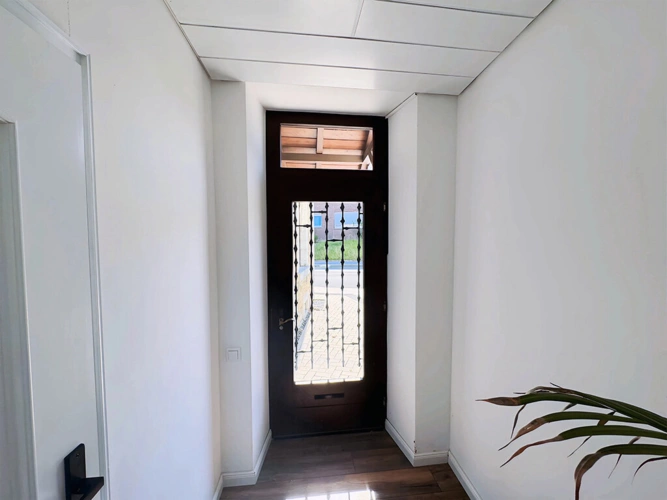 Das Grundstück ist ca. 373 m² groß; an beiden Seiten des Hauses liegt ein kleiner Garten.