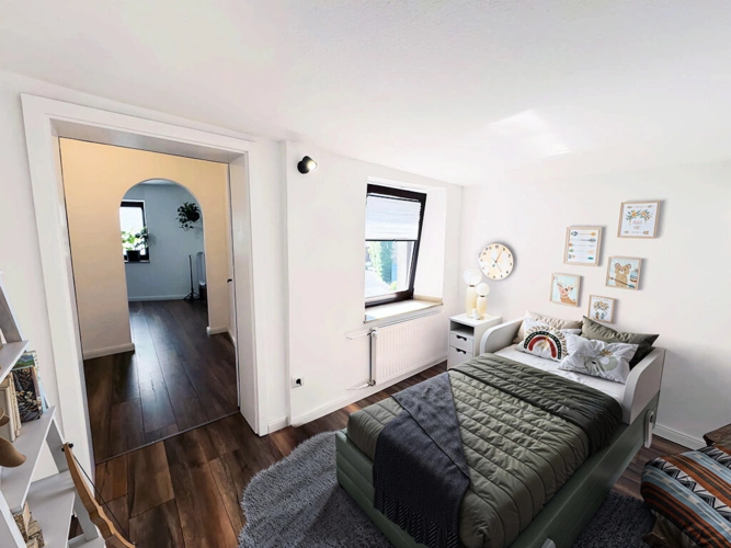 Hinweis: Wir haben einige Zimmer virtuell eingerichtet, um Ihnen einen Eindruck zu geben, was hier möglich ist. Wenn Sie sich für dieses Haus interessieren, fragen Sie bitte nach unserem 360-Grad-Rundgang, der die aktuelle Situation darstellt.