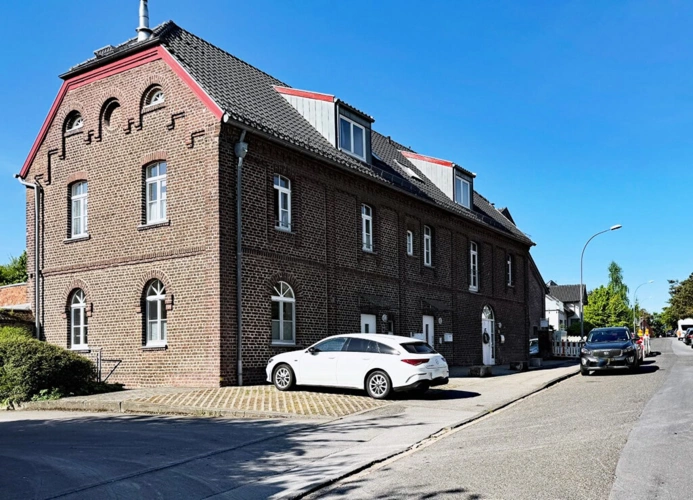 Die hier angebotene Einheit (im Aufteilungsplan mit Nr. 3 bezeichnet) befindet sich im straßenseitigen Obergeschoss links eines Gebäudes, das nach einem Brand um 1963 (Gebrauchsabnahmeschein) auf einem ca. 637 m² großen Grundstück wieder aufgebaut wurde. 1984 erfolgte die Eintragung in die Denkmalliste der Stadt Aachen (Nordteil der ehemaligen Hofanlage in seiner äußeren Erscheinung, Außenwände und Form des Daches, erbaut 1781).