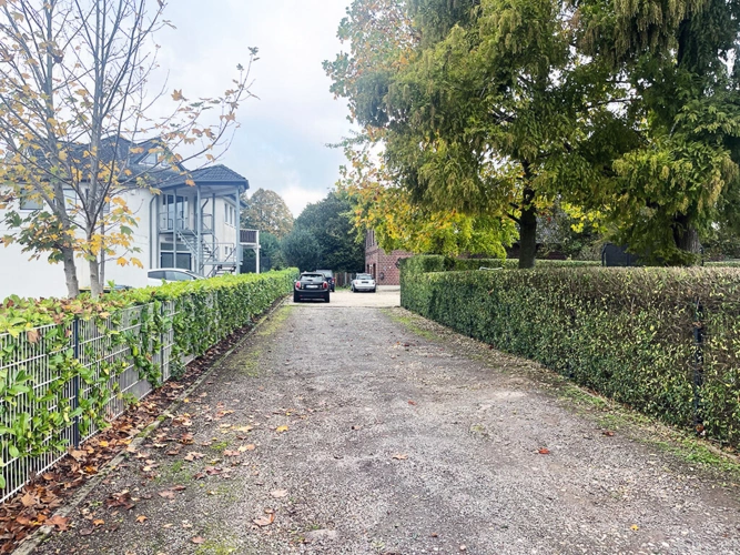 Das ca. 1.990 m² große Grundstück teilt sich auf in ca. 1.880 m² Gebäude- und Freifläche sowie in ca. 110 m² Verkehrsfläche, die auf eine private Zuwegung zur Immobilie entfällt.
