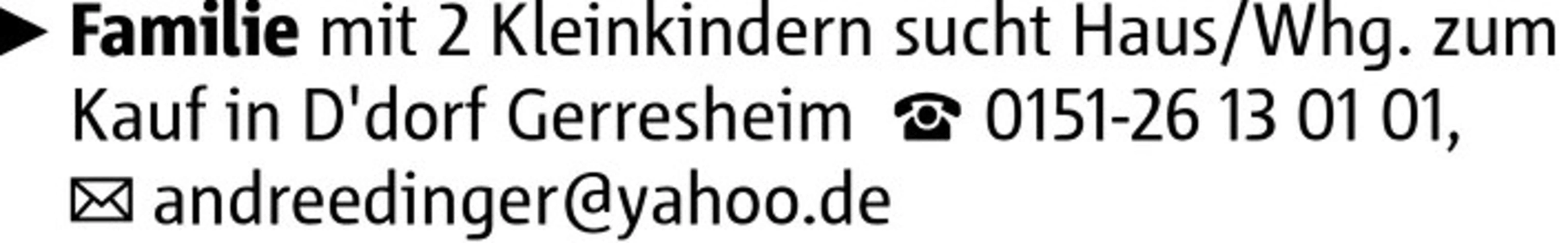 Familie mit 2 Kleinkindern sucht Haus/Whg. zum Kauf in D'dorf Gerresheim 0151-26 13 01 01, andreedinger@yahoo.de