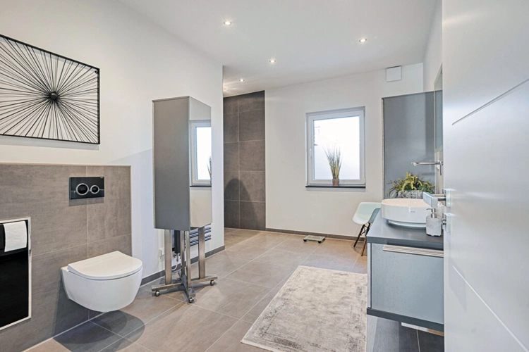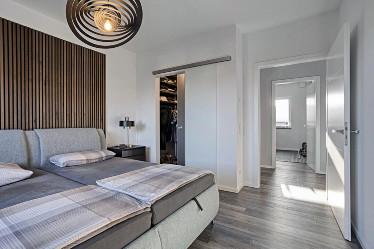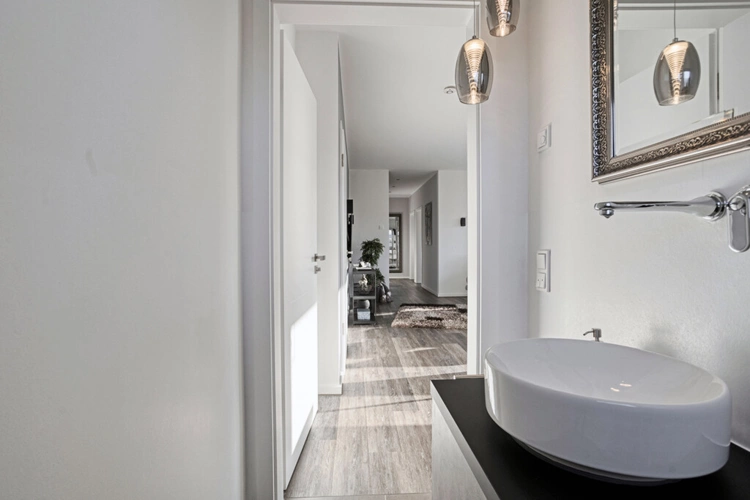 Das Bad ist elegant und großzügig gestaltet und fügt sich nahtlos in das tolle Gesamtbild der Wohnung ein. Das Elternschlafzimmer mit Ankleidebereich sowie zwei weitere, große Räume runden das Platzangebot perfekt ab.