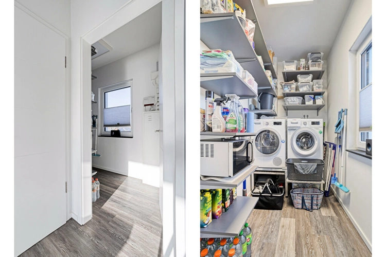 Aufteilung: Wohn-, Ess- und Kochbereich, Elternschlafzimmer (mit Ankleide), Kinderzimmer I, Kinderzimmer II (respektive Arbeits- bzw. Gästezimmer), Diele, Bad, Gäste-WC, Abstellraum