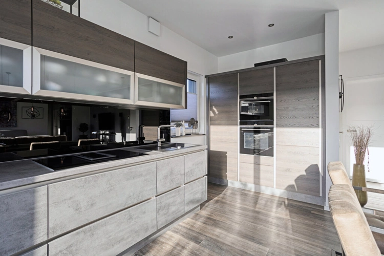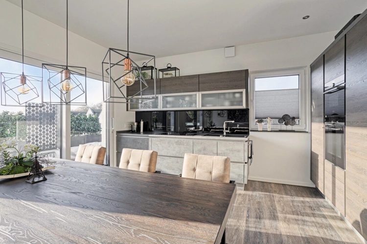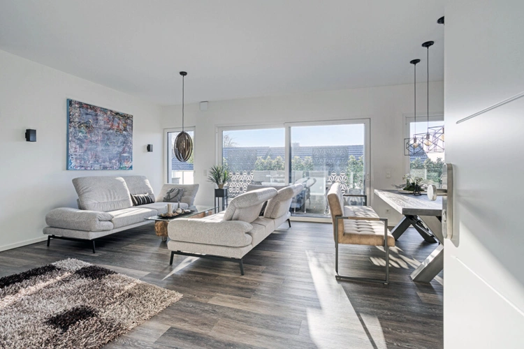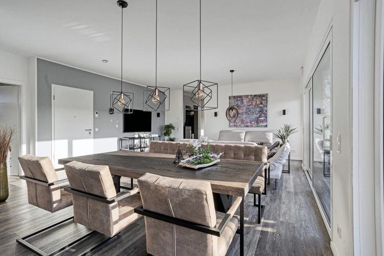 Der großzügige Wohn-, Ess- und Kochbereich bildet das Herzstück der Wohnung und überzeugt durch seine offene Gestaltung. Großflächige Fenster sorgen für eine hervorragende Belichtung und schaffen ein angenehmes, lichtdurchflutetes Wohnambiente.