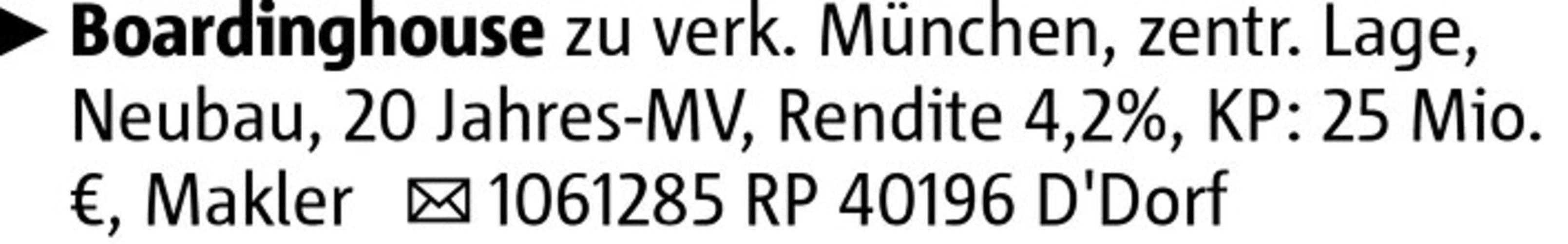 Boardinghouse zu verk. München, zentr. Lage, Neubau, 20 Jahres-MV, Rendite 4,2%, KP: 25 Mio. €, Makler 1061285 RP 40196 D'Dorf