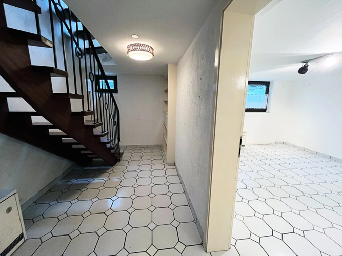 Darüber hinaus gibt es weitere Stau- und Nutzflächen im Dachgeschoss (nicht ausgebaut) sowie im Kellergeschoss (mit praktischer Außentreppe).