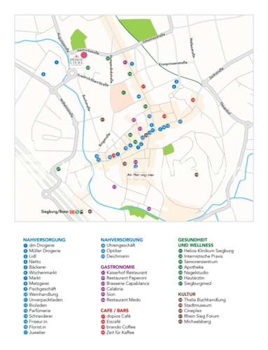 Außerdem profitieren Sie von dem Angebot des in direkter Nachbarschaft gelegenen ambulanten Pflegedienst der Seniorenzentrum Siegburg GmbH. Die Lage Ihres neuen Zuhauses mitten im lebendigen Siegburg macht ein Auto überflüssig. Alle Wege lassen sich unkompliziert zu Fuß bewältigen. Ein Lebensmittelgeschäft und eine Drogerie befinden sich in Ihrer unmittelbaren Nähe. In zehn Minuten laufen Sie vorbei am Klinikum zum zentralen Markt. Das RHEIN SIEG FORUM ist ebenfalls in direkter Nähe. Ihre neue Wohnung ist gut geschnitten. Überzeugen Sie sich selbst.