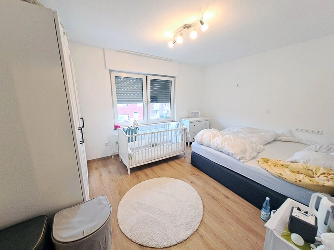 Obergeschoss (ca. 70 m ²): Wohnzimmer, Esszimmer (mit Balkonzugang), Schlafzimmer, Küche, Diele, Bad
