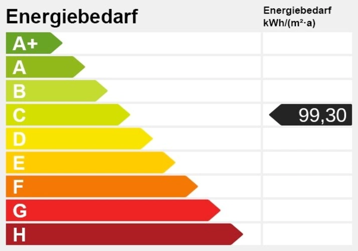 Es liegt ein Energiebedarfsausweis vor. Dieser ist gültig bis 5.5.2029. Endenergiebedarf beträgt 99.30 kwh/(m²*a). Wesentlicher Energieträger der Heizung ist Fernwärme. Das Baujahr des Objekts lt. Energieausweis ist 1981. Die Energieeffizienzklasse ist C.