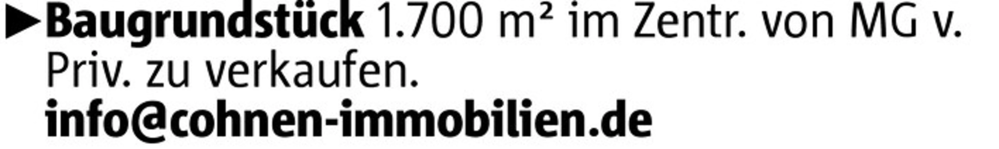 Baugrundstück 1.700 m² im Zentr. von MG v. Priv. zu verkaufen. info@cohnen-immobilien.de