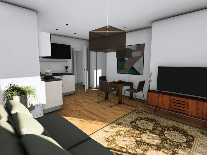 Ebenfalls im Kaufpreis bereits enthalten: -Erstellung der Außenanlage und der Grundstückseinfriedung -Fertigstellung der Allgemeinheitsflächen wie Treppenhaus und Flure -Oberböden gemäß Baubeschreibung