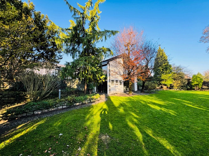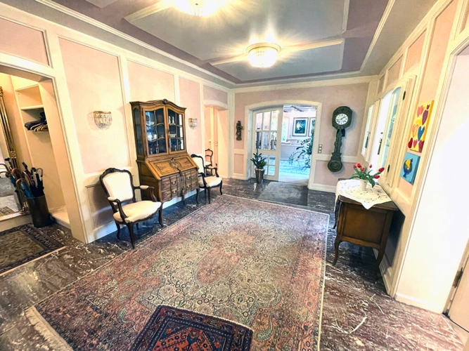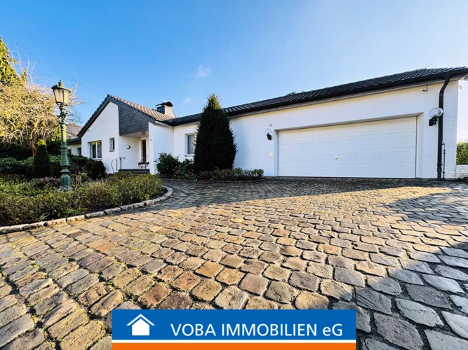 Diese äußerst interessante und hochwertige Immobilie wurde um 1965 in unterkellerter Massivbauweise auf einem ca. 2.560 m² (!) großen Grundstück in Haaren errichtet.