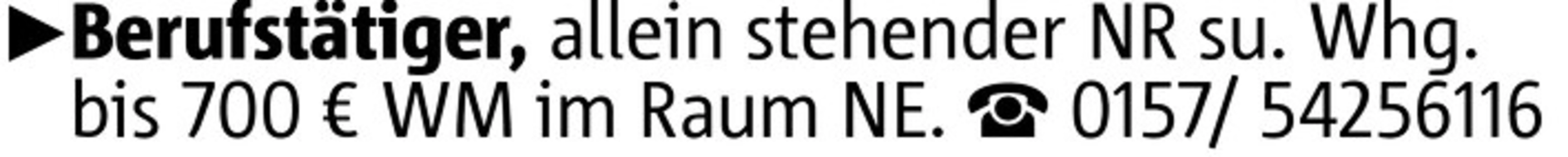 Berufstätiger, allein stehender NR su. Whg. bis 700 € WM im Raum NE. 0157/ 54256116