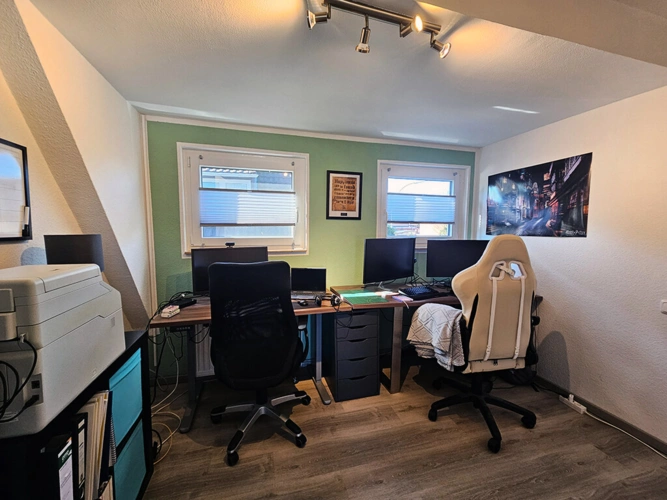 Dachgeschoss: Elternschlafzimmer, Kinderzimmer (respektive Büro), Flur, Bad
