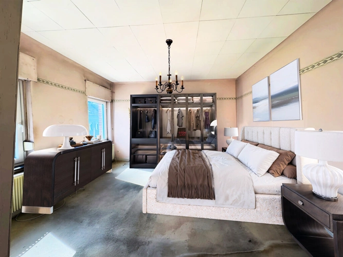 Hinweis: Wir haben die Zimmer virtuell eingerichtet, um Ihnen einen Eindruck zu geben, was hier möglich ist. Wenn Sie sich für dieses Haus interessieren, fragen Sie bitte nach unserem 360-Grad-Rundgang, der die aktuelle Situation darstellt.