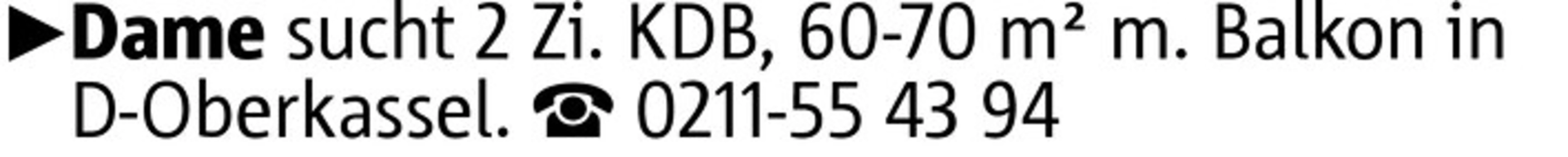Dame sucht 2 Zi. KDB, 60-70 m² m. Balkon in D-Oberkassel. 0211-55 43 94