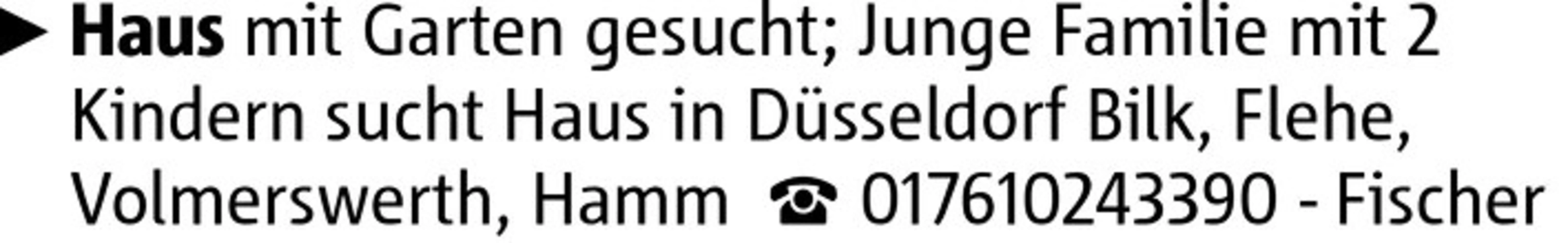 Haus mit Garten gesucht; Junge Familie mit 2 Kindern sucht Haus in Düsseldorf Bilk, Flehe, Volmerswerth, Hamm 017610243390 - Fischer