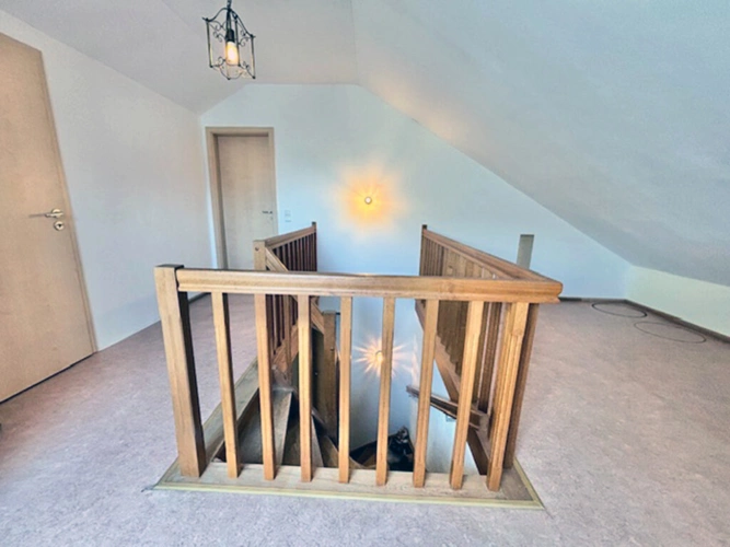 Darüber hinaus wurde das Dachgeschoss wohnraumähnlich ausgebaut und ist über eine feste Treppe erreichbar (Abstellraum, Heizungsraum / Gasbrennwerttherme 2023, großer heller Raum mit Heizkörper).