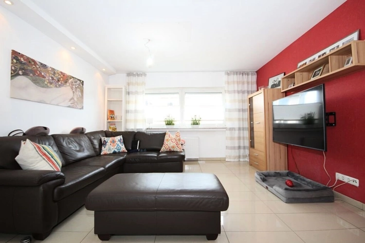 Mit circa 86 m² Wohnfläche eignet sich das Haus ideal für Singles, Paare oder Familien mit einem Kind. Die Raumaufteilung ist konventionell und gut. Im Erdgeschoss sind eine kleine Eingangsdiele und ein einladendes Wohnzimmer mit einer offenen Küche und einem Essbereich.