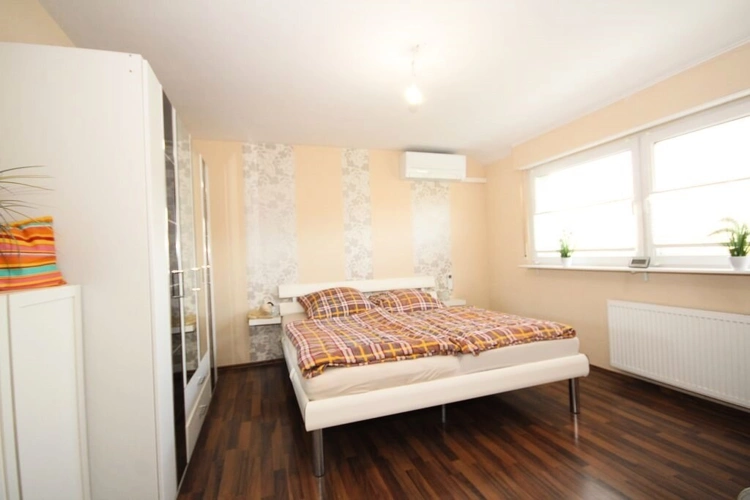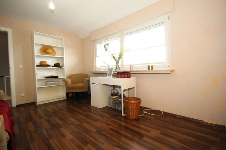 Das Obergeschoss ist mit einem geräumigen Elternschlafzimmer, einem weiteren Zimmer und einem Tageslichtbad mit Wanne, Waschbecken und Toilette ausgestattet. Das Badezimmer wurde 2011 modern gefliest. Alle Räume sind hell, freundlich und modern eingerichtet. Das Schlafzimmer ist mit einer Klimaanlage ausgestattet. Ein drittes Zimmer wird zurzeit als kleines Büro genutzt.
