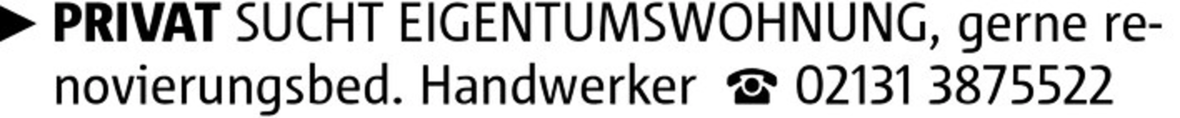 PRIVAT SUCHT EIGENTUMSWOHNUNG, gerne renovierungsbed. Handwerker 02131 3875522