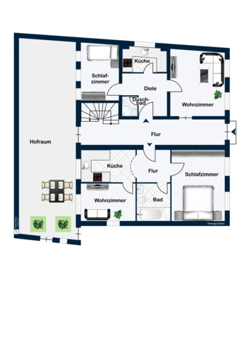 Zusätzlich steht ein gemeinschaftlich genutzter Innenhof zur Verfügung, der den Wohnwert hebt.